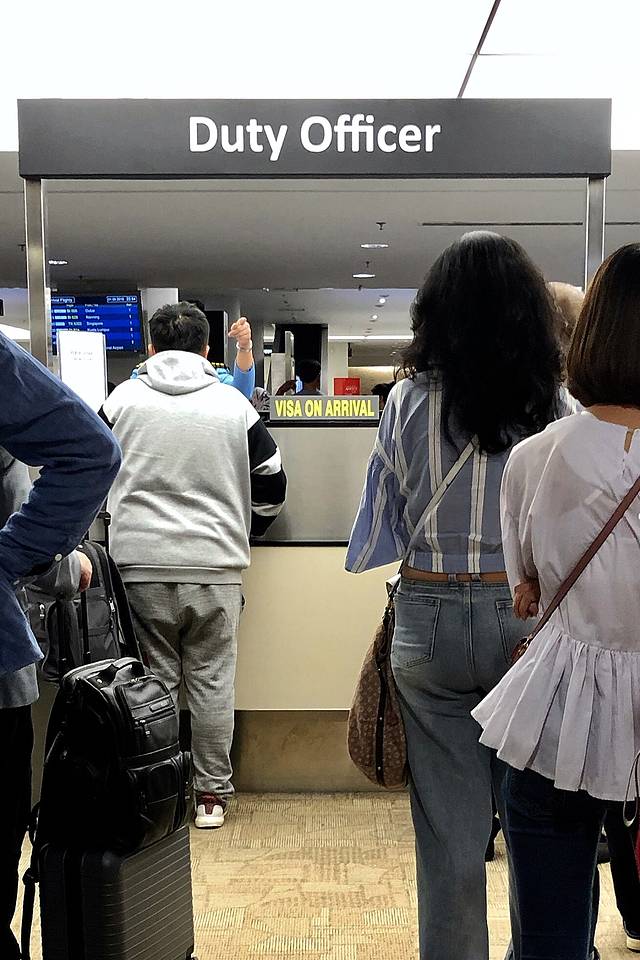 也许是办理落地签的游客太多,什么机票、酒店订单都不要,只要20新币签证费(新加坡元与文莱元等同使用,5元/文币),签证馆拿起护照扫一眼,只听见章戳磅磅地响个不停——通过。温馨提示:Duty Officer 窗口立有一块小小的标牌VISA ON ARRIVAL,认清这个队才行,要不排一个小时白费。
