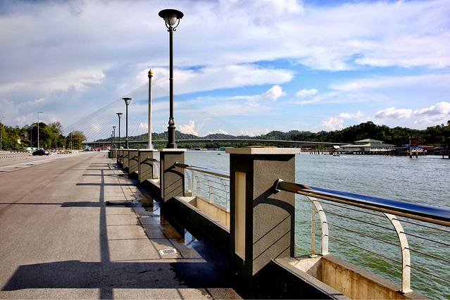 文莱河从斯里巴加湾市区旁流过,形成一个河湾,在这片宽阔的水面上,有一个面积达2.6平方公里的水上村寨。