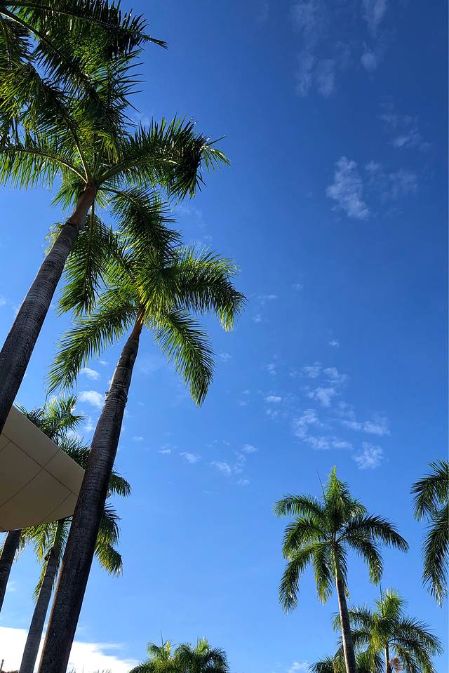 仰望天空,椰林树影,勾画出一幅南国的风景画。