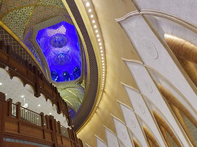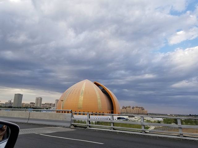 新疆大剧院代表着新疆歌舞艺术展示的整体形象,大剧院主体建筑坐落在平缓的台基上,以盛开的天山雪莲为原型(远看更像洋葱头),形成里外套层的穹顶造型的主体形象。外饰面为黄褐色金属光泽的铝板材,内核金色砖纹肌理表达出浓烈的新疆地域文化特征。