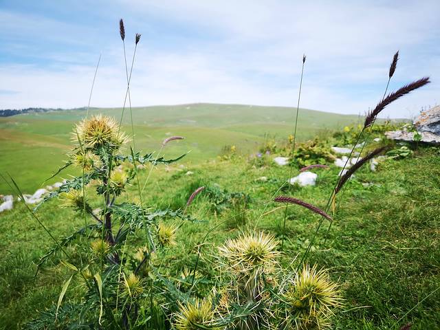 东喀拉峻位于深处,也是整个草原的精华区域,这里最著名的有五花草甸、鲜花台、库尔代森林大峡谷、三极夷平面观景台和猎鹰台观景点五处景点,既有雪山、草原风光,也有森林峡谷等,景色多样,非常优美。不过五个景点距离观光车的停车点都有一点距离。
