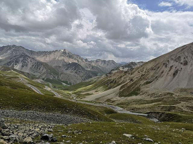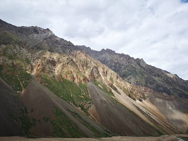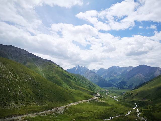 路边的峭壁中很大一部分都和地面形成不小于90度的倒坡,如刀劈一般,相对高度差在百米以上。被折为三截悬于山腰的龙池瀑布、龙池都隐藏在独库公路中部海拔2000多米处的天山腹地。我们经过的是乔尔玛风景区,一道道达坂,高山雪峰,山中的流云,全国海拔最高的隧道,都将使这条路的旅行变得非同凡响。