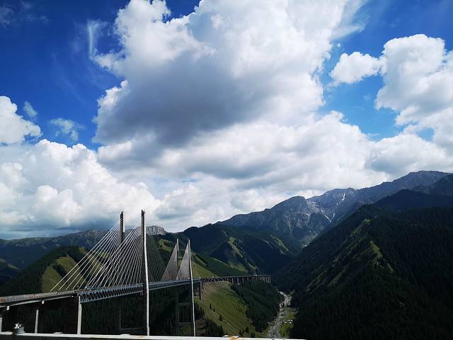 果子沟大桥作为新疆第一座斜拉桥、第一高桥,是新疆最大最重要的桥梁,同时也是全国首座公路钢桁梁斜拉桥,它集技术、新结构、新工艺、新设备“四新”于一身,是新疆公路建设史上一次重大突破。