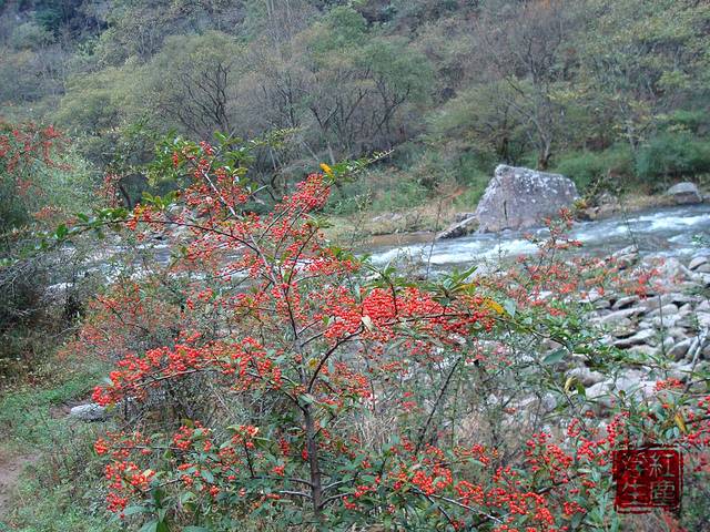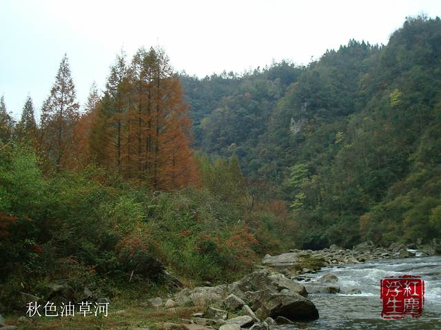 油草河景区应该是黄水森林公园秋天最漂亮的景点了。深浅不一的火红,金黄,翠绿夹杂在一起,层林尽染,五彩斑斓组成了让人目眩的美丽色彩。在此时此景中,文字的介绍反而成为了一种累赘。只感觉视野,心神,时间,都会凝固,凝固成人生旅程中一段非常美妙的回忆。