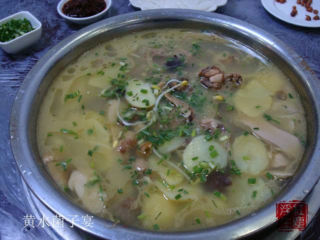 4, 黄水镇主要吃当地特色的菌子宴。清汤极鲜绝无鸡精味精味。当地每月逢1,4,7日赶集后的菌子最新鲜,自己算好时间去下箸。当地最出名的酒应该是石柱高粱红,50度纯高粱酿白酒,非老酒鬼喝这个酒有点难受。附图。