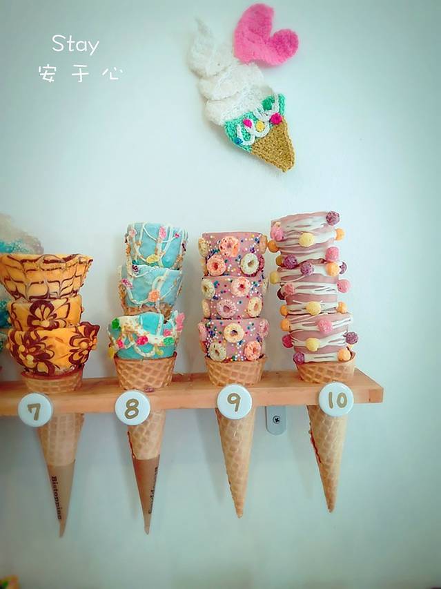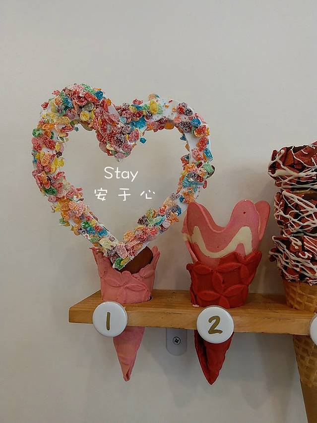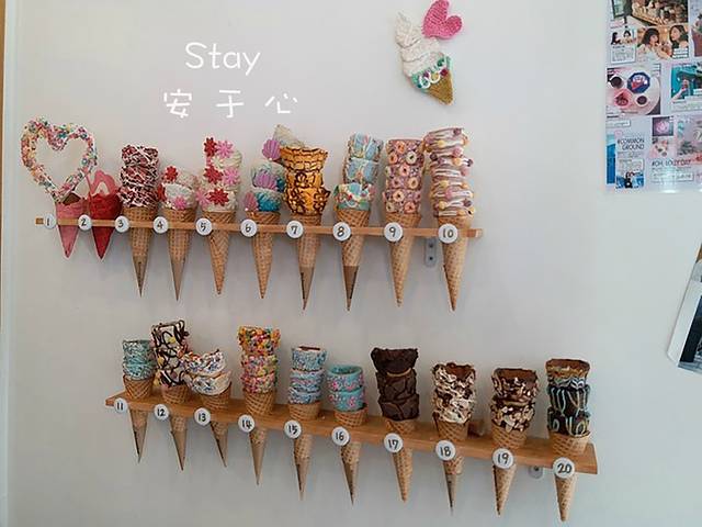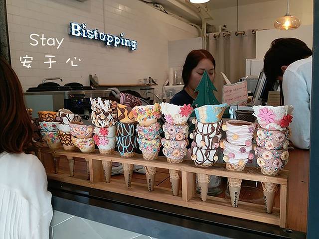 之后去了BISTOPPING。一家冰淇淋店,满满的少女心,开心爆了。可以自己选菜单上的款,也可以自己选杯底,配料,搭配一款。果断自己搭配。对了,搭配之前,一切未知,我也不知道我搭配的冰淇淋出来后会是毛样。