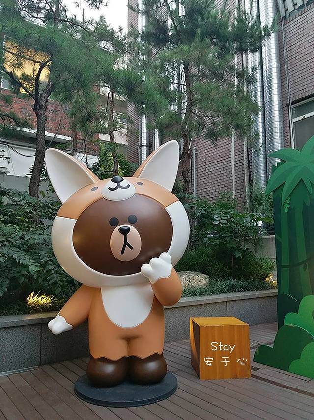 点了两杯咖啡,半路走着喝,去了LINE FRIENDS店铺。为什么韩国能把表情包也做成周边呢,而且还那么可爱,简直了。