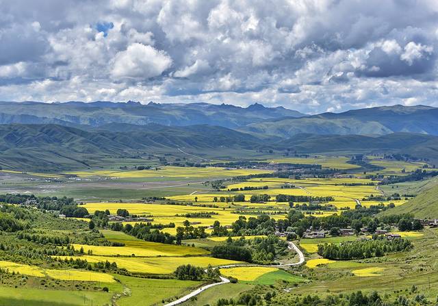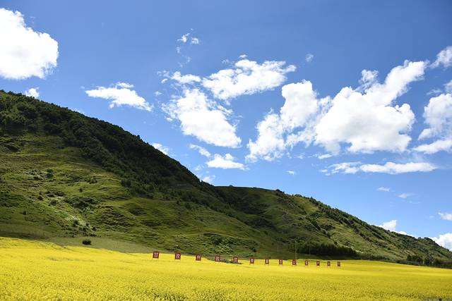 新都桥 ,是传说中的摄影家天堂,虽然 新都桥 最美的时节应该是秋天,但夏天也不失为一种退而求其次的选择,至少大片的油菜花还开着,至少因为雨水充沛,河里的水势也更大一些,至少满山的树和草都是养眼的绿色。