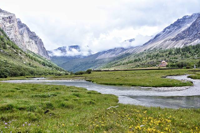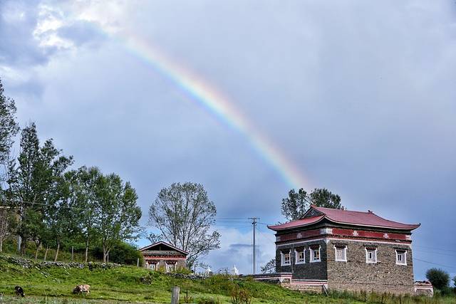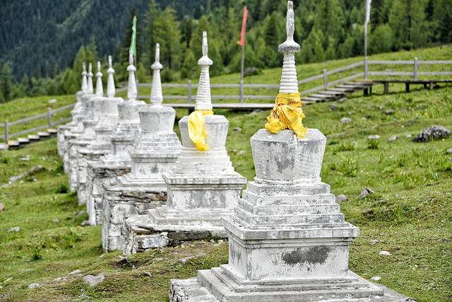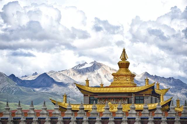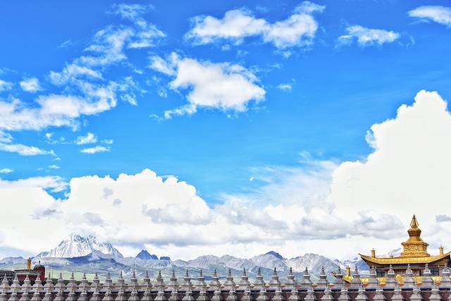 明净的天空,辉煌的庙宇,开满鲜花的高山草甸。