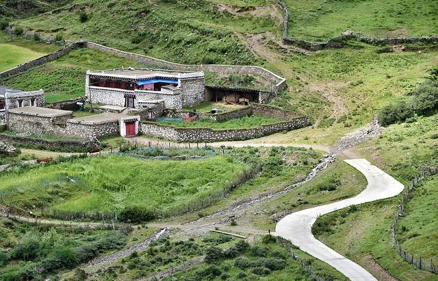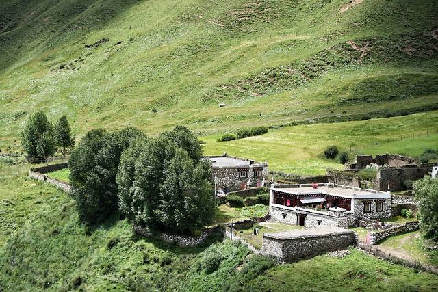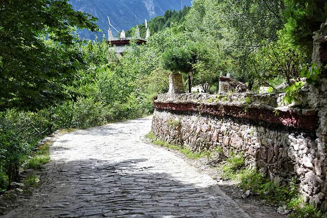 我们从山坡上一路从寨子里穿过,藏寨的田园风光有着一种小家碧玉的美。