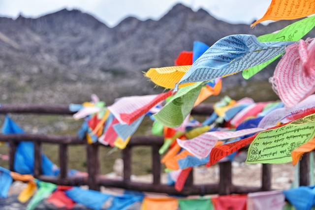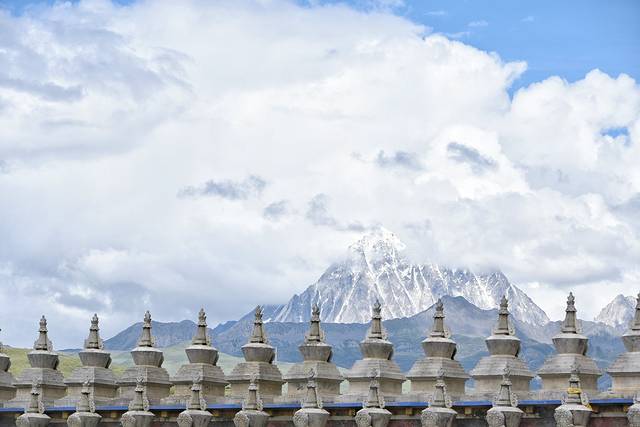 一路似乎都是云朵低沉,阳光时隐时现,有些遗憾,没有能看到亚拉雪山的全貌,但幸运的是天气不算太差,至少在塔公寺前,我看到一大半的亚拉真容。亚拉雪山是藏区的四大雪山之一,也是八美地区的一座神山,传说亚拉是舍得的意思,亚拉雪山也是一座象征的奉献和牺牲的神山。