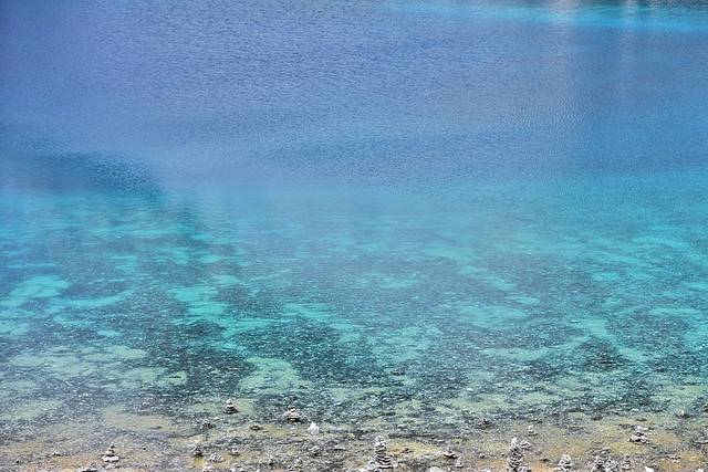 可能因为季节不对,我们没有看到五色海的五色,但是蓝绿色的湖水看上去还是熠熠生辉,海子底下的植物影子让海子呈现出独特的花纹,也许在特殊的季节里,那些植物也会让海子呈现出真正的五色。