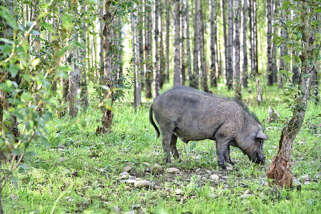 晚饭后,在 稻城 的河边散步,偶遇了一只在吃草的黑猪,第一次发现猪竟然是可以吃草的,于是开始YY吃草的猪肉会有多好吃,但是很可惜,没有吃到黑猪肉,不过我吃到了很棒的牦牛肉火锅。
