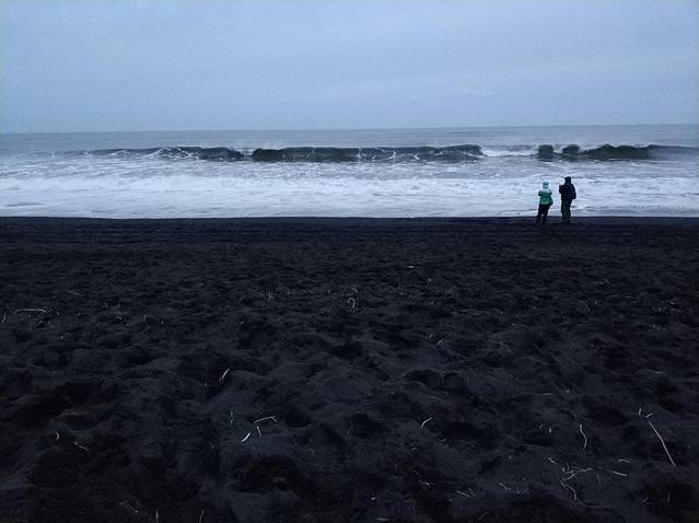 说起来黑沙滩是我第一次看到颜色为黑色的沙滩,百度了下:黑沙为火山喷发后,高温岩浆遇海水迅速冷却,形成的颗粒细小的熔岩颗粒。