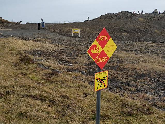 黄金圈(Golden Circle)是冰岛最负盛名的旅游路线,包括辛格维利尔国家公园,大间歇泉和黄金瀑布三大经典自然景观,以及周边一些小间歇泉,瀑布,火山口湖组成。根据行程安排,我们跳过了辛格维利尔国家公园(这为本行的一个小遗憾埋下了伏笔),直接驶向Vik小镇。由于前三天的行程安排是一个往返路线,沿途仅挑选了部分游览(凯瑞斯火山口湖 - 黄金瀑布 - 大间歇泉 - 黑色沙滩 - Vik),剩余部分计划在返程时补上。