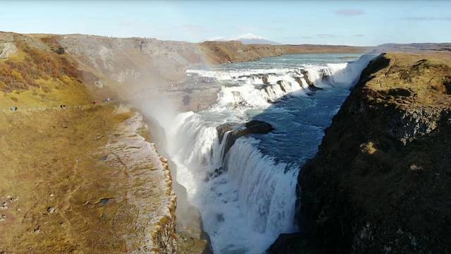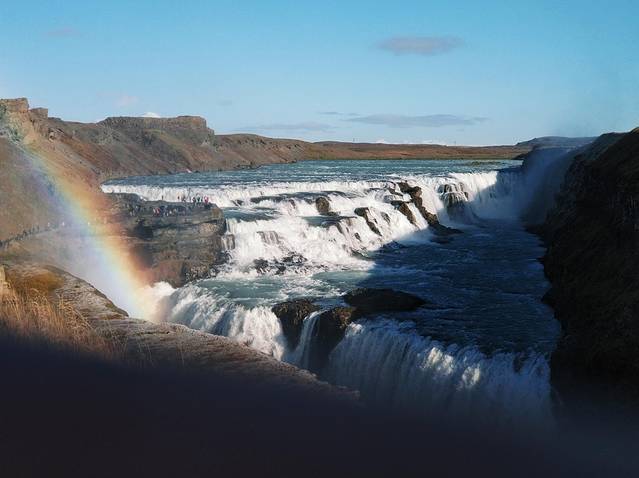 黄金瀑布,冰岛最为著名,同时也是欧洲知名的瀑布之一。游客可以行至崖边,近距离欣赏时极具冲击力。
