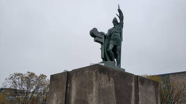 路边的雕塑,似乎是北欧历史上的某位英雄人物