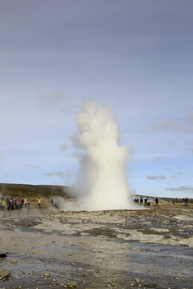 每隔 5 到 10 分钟喷发一次,伴随着巨响,直冲云霄。整个间歇泉区域由数个泉口组成,可任意游览。因为根本没有景区工作人员,大家千万注意保持距离。