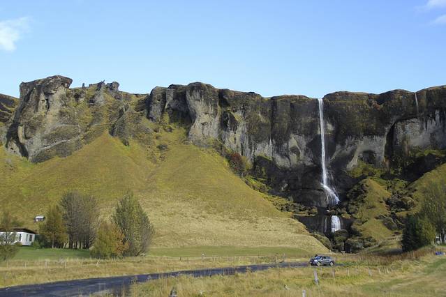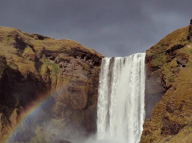 瀑布下层扬起的水汽形成彩虹,在当地传说中,一个维京人把宝藏藏在了斯科加瀑布的后面,至今还没有被人发现。