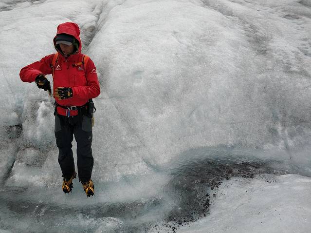 向导阿诺德介绍冰川相关的有趣小知识。