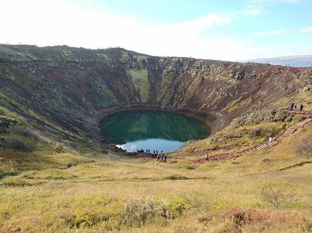 凯瑞斯火山湖约 6500 年前火山喷发而形成,是一个倒过来的圆锥状盆地,这个景点也是冰岛唯一一个收费的自然景点(600 ISK / 人)。说起来冰岛的人文景点正好反过来,几乎全部都要收费,感觉是冰岛人民并非不乐衷于赚钱,而是人实在太少了,分配不到野外景点收费。