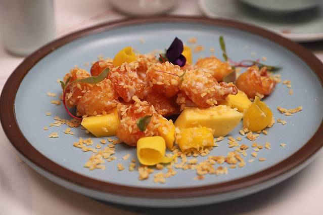 芒芒沙律虾,饱含热带风情的芒果搭配新鲜十足的虾仁,清新貌美,鲜甜可口,上桌就让你想独吞一盘!