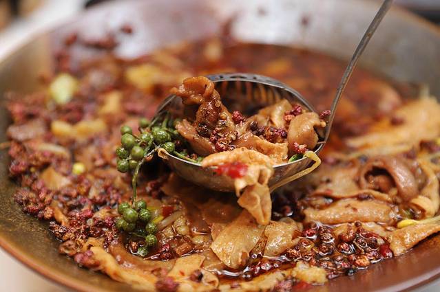 小编最爱的是名字就让人上瘾的上瘾藤椒盖牛舌,秘制而成的牛舌盖上麻麻的藤椒,脆而不腻,清香麻爽,椒香四溢。