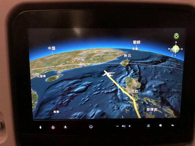 飞机座位上的小电视可以查看三维地图,随时了解飞机当时所在的位置,以及离目的地的距离。
