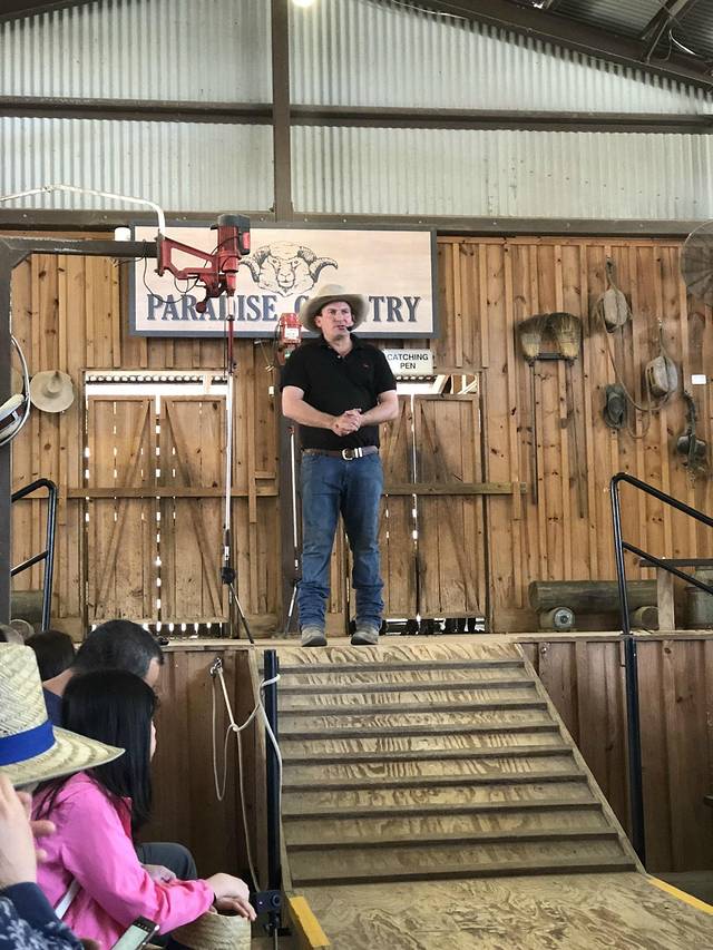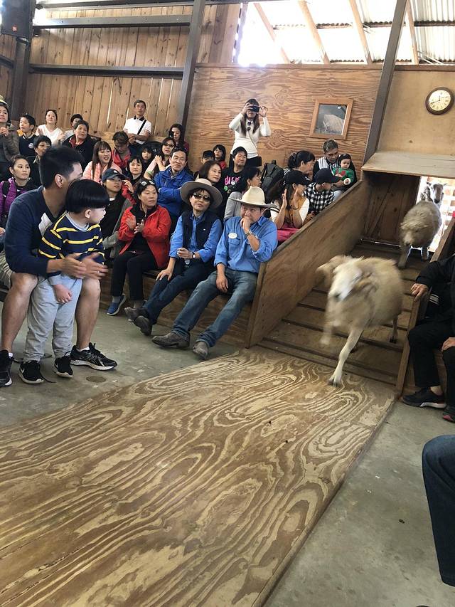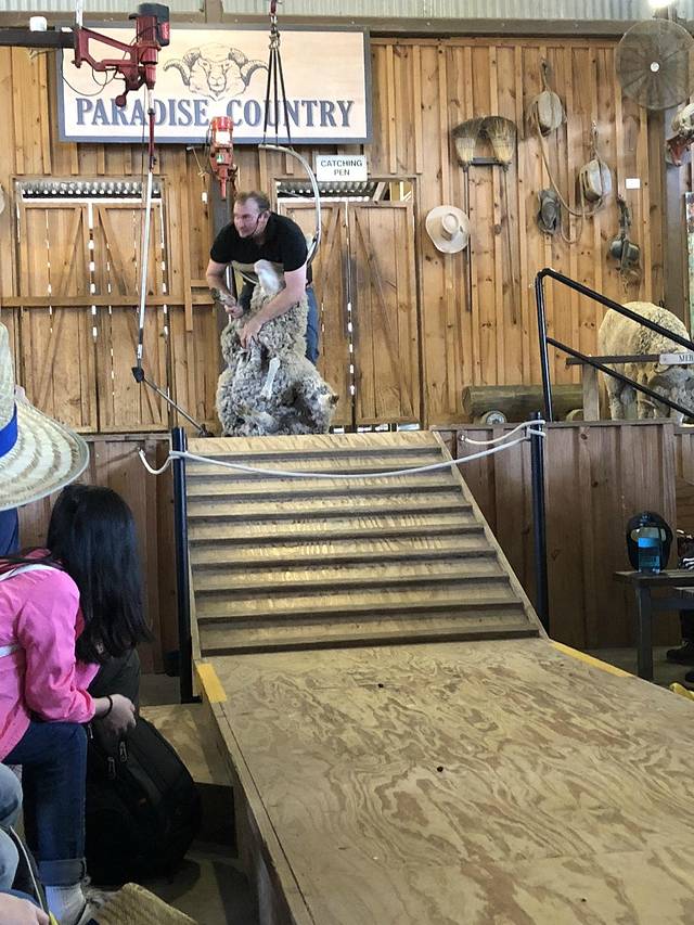 观看剪羊毛表演。
