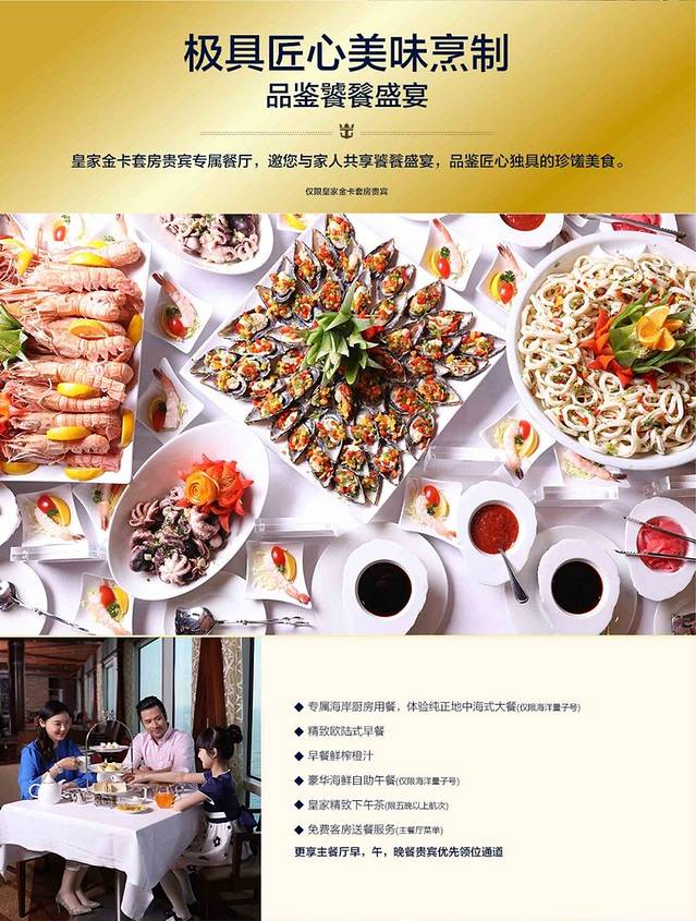 第一次体验皇家金卡套房的服务,总结起来可以是:个性化定制服务,所有的服务人员都格外贴心细致。从行前沟通、抵离码头、登离船、客房服务、餐饮、娱乐、休闲、礼宾服务等全方面均享专属礼遇。拥有贵宾特权的客人将依据其配套享有如优先上下船、免费北极星体验、娱乐表演专属坐席及贵宾通道、贵宾专属餐厅及用餐专属区域等专属礼遇。