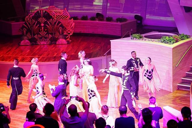 皇家金卡套房在娱乐活动上的待遇还有观看演出的预留座位,那可都是好位置,就冲这一点,也要去270°观景厅看一场星海传奇,那是量子号的当家演出,为了全方位体验量子号,一场演出是应该包含进去的。