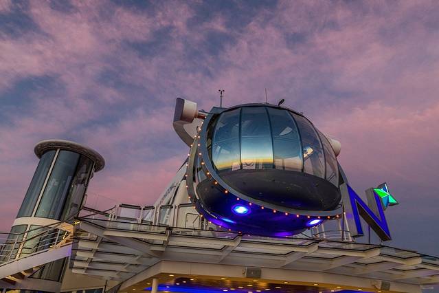 白天可以犹如海鸥一般俯瞰一望无际的蔚蓝海面,夜晚则可以欣赏量子号上璀璨夺目的霓虹。所以,白天体验还是晚上体验,这是个问题。