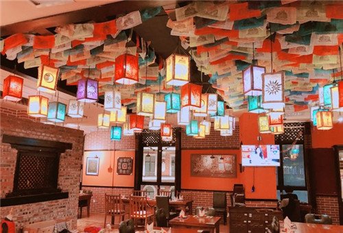 尼泊尔异国风情的餐厅,一进门就是独特的熏香气味,独具风情的异域装饰,步入其中,你会不知不觉慢下来。进店明亮的色彩,还有窗边的榻榻米,都让人好像来到了尼泊尔一样。