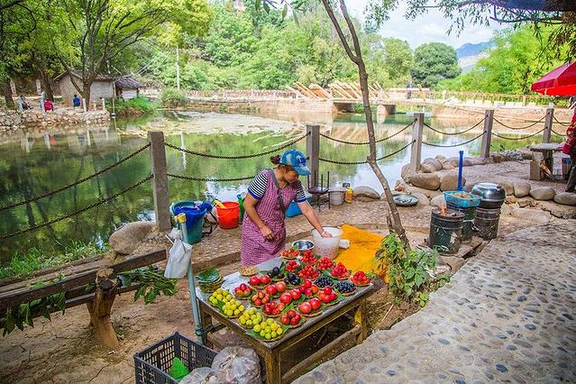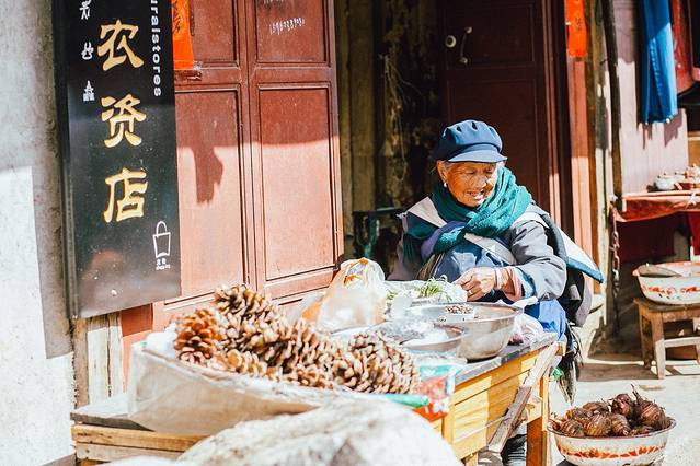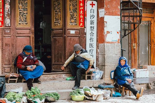 如果你想要感受真正的纳西族生活气息,那就跟我一样来白沙古镇走一走。白沙古镇,相比其他的丽江景点,这里名气小的可怜,也正因为如此,才保留了这里本该有的模样。古镇的牌坊前,当地的阿公阿婆在道路两旁摆摊卖着蔬菜瓜果,由于是下午,并没有多少人,他们操着一口地道的纳西语开心的的聊着天。