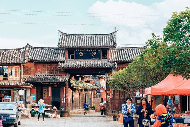 白沙古镇位于丽江古城北约12十里的一座古老的小镇,北临玉龙雪山,南至龙泉 ,西依芝山。当年洛克笔下的丽江写的就是白沙和玉湖村。