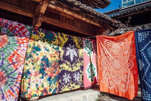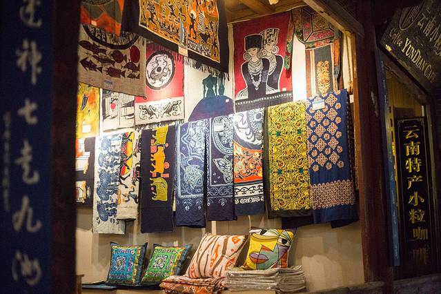 有人说,白沙是二十年前的丽江。确实是这样,这里只有一条陈旧的商业街,还有许多当地人的纳西小院,保留着古镇原有的样子,抬头便能看见玉龙雪山。卖纪念品的小店主要就是卖两种东西,一是扎染,另外就是各种仿古董。