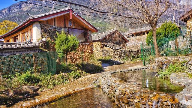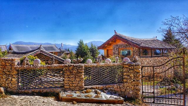 雪嵩村的房子都是用玉龙雪山上的石头搭建成的,铺路的也是石头,可以说是一个石头村,但这可不是普通的石头哟,这些石头据说都含有金矿,所以这里的村民其实是住在金矿里。