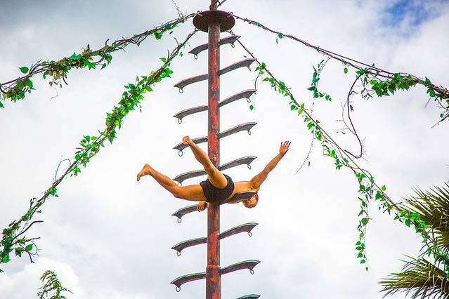 上刀山杂技表演,下火海滚烫的出入,当然了心里还是多少会为这些演员捏上一把汗。最后当成功表演后,围观的游客们情不自禁的竖起大拇指,连连叫好。
