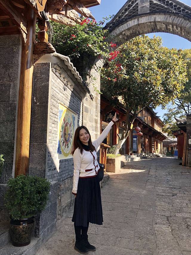 宽敞的街道干净卫生,阳光晒在青石板上,少了游客身影的拥挤,这里是我不曾见的丽江 。