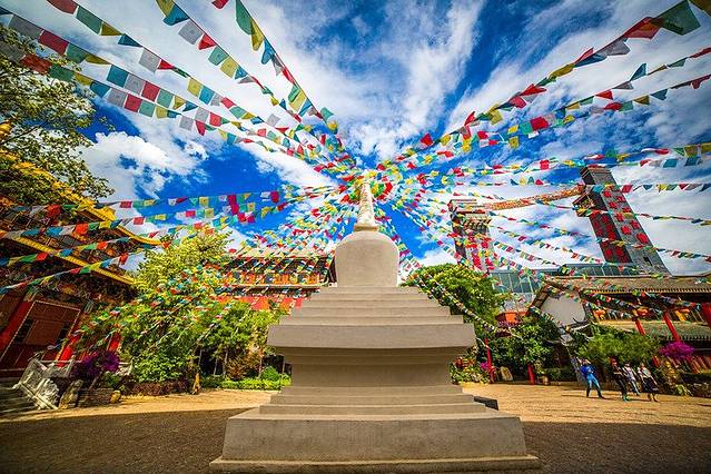 过完检票口,巨大的白塔挂满经幡,在蓝天白云下格外美腻。《丽江千古情》与《丽江恋歌》联票最划算了只340元,丽江千古情景区主要由丽江千古情、丽江恋歌乐园两大块组成。 除了千古情演出还有诸多互动演出轮番上演,恋歌乐园的游乐场让你时刻找回童年的乐趣,饿了有美食街,所以这里足够让你从开园玩到闭园。 所以特别建议开园就入园,绝对的值回票价。