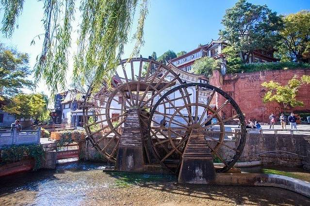 大水车:是大研古城的标志性建筑,也就是古城的北门。所以这也是游人拍照留念的绝佳地点。2011年12月份,丽江古城保护管理局对大水车进行了一次拆旧换新。