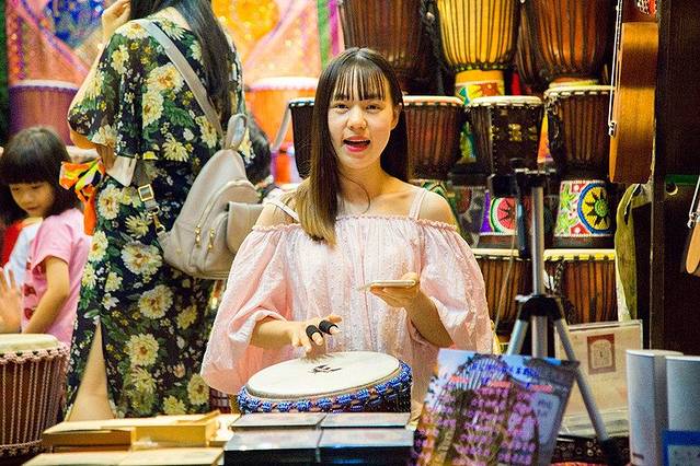 这类卖鼓的店都会卖车载CD,放着云南流行的美妙歌曲,原创的,翻唱的,酒吧的,印象丽江的等等。这些歌曲都有一个共同的特征,就是由这种小鼓伴随打着节奏。店里放着CD,老板娘打着手鼓唱着歌,吸引了很多路过的游人驻足聆听。有些朋友在坐进去学着一起打鼓,喜欢的可以买个鼓买套碟带回家。