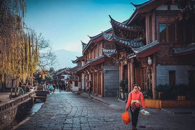 早上9点多了,阵阵感受到丽江的“闲”,走在路上基本上都是游客,还有许多商铺是关着门的。一个人出门溜两条狗是常事。从当地人了解到,丽江真的是很清闲,本地人几乎每天都是睡到自然醒,一觉醒来差不多就中午了,平时也没什么事干,就打打麻将,跟别人聊聊天。对于我这从繁华都市来的孩子,就剩瞪大眼睛惊叹羡慕了!但是想想,问自己,以后自己会愿意一辈子就这样生活吗?回答是不能。或许是前18年的生活模式,丽江这种生活或许只适合,在快节奏的城市里工作压力大,偶尔过来度假放松的。