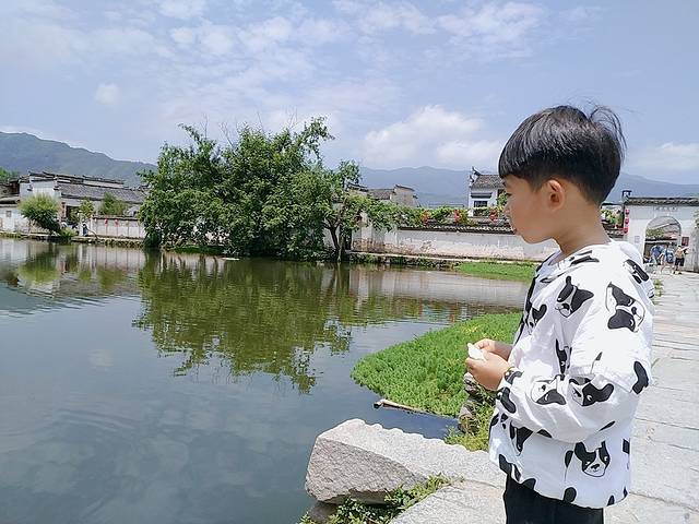 宏村的门票是104元,3天进出免费。在皖南众多风格独特的徽派民居村落中,宏村是最具代表性的, 从整个外观上说,宏村是古黟桃花源里一座奇特的牛形古村落,既有山林野趣,又有水乡风貌,有"中国画里的乡村"的美誉。宏村很小,差不多2个小时就可以逛完的小村子。如果你的行程不赶,可以在这里住下,体验一下宏村的慢生活。傍晚十分待白日里喧闹的人群褪去,悠闲的在南湖边上逛逛,或者坐在南湖边的柳树下看夕阳西下。晚上再去村子里面逛逛,体验一下夜幕降临后安静的宏村,宏村里面小巷的每个拐角都有指示牌,不用担心迷路。南湖的东边有一片湿地,夏日的夜晚有很多萤火虫哦。我跟老公抓了一些放瓶子里,带回去给高贝贝,这些小家伙们活了六七天,生命力算是很顽强了。
