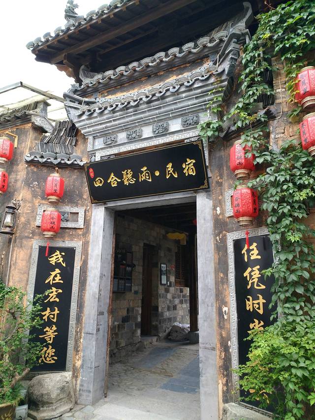 宏村久栖·宏村壹号探花府,就在宏村入口不远处,南湖边上,因为宏村的路不平都是石块铺的,行李箱不是很好拖,所以这家住宿位置我觉得很好,不过一般店家都会到村口接并帮忙拎箱子的。在去哪儿网上可以预定房间。