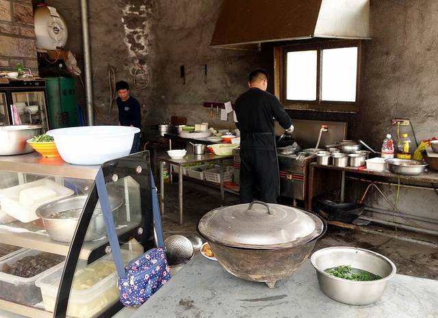 这是昌河山庄的厨房,看着还比较卫生,饭菜稍贵。一盘野菜饺子,要30元。
