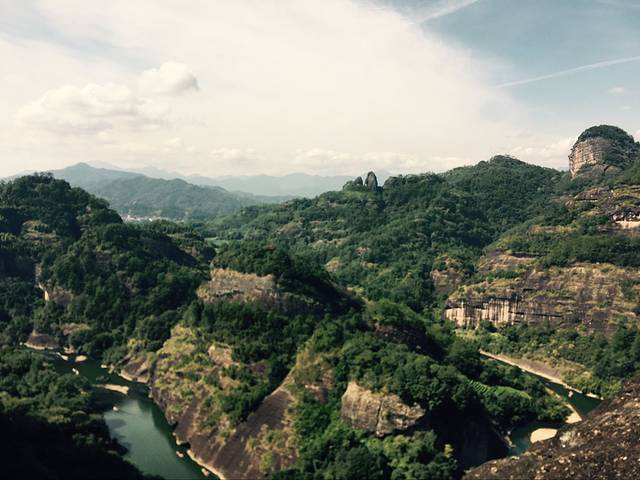我们走的常规路线就是人非常多,需要排队,虽然规定是只上不下,但是很多人都怕一半就放弃了。其实山一点也不高,很多小朋友和老人都怕上去了。但是风景还是不错的,武夷山宣传图的一张就是在这里拍的。