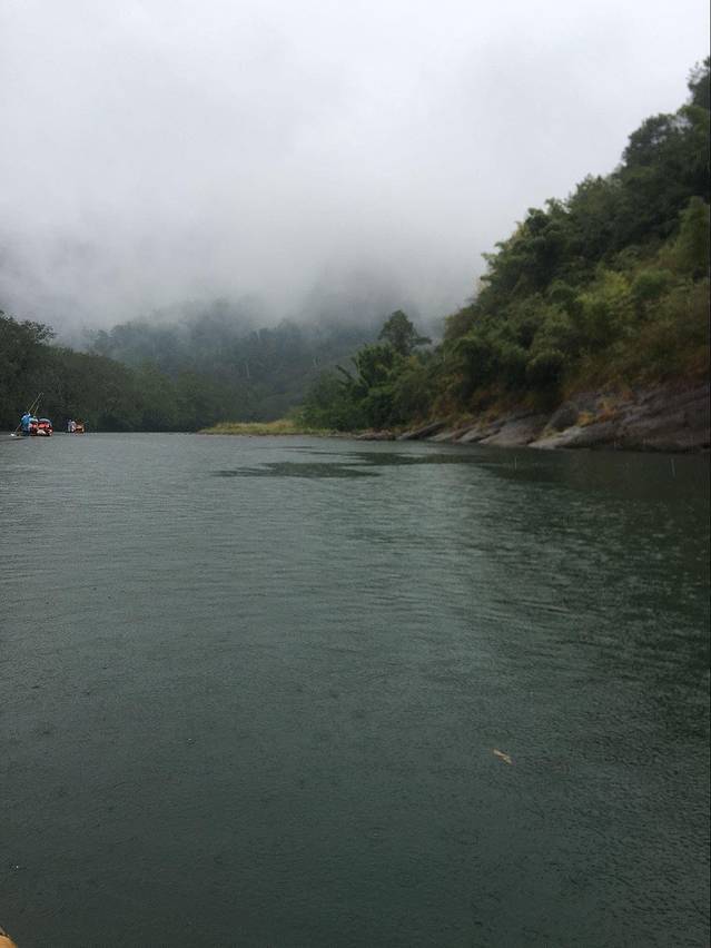 第二天天公不作美,阴雨绵绵,在路边买了雨衣,鞋套。直奔南门去往竹筏码头。坐竹筏也会发雨衣,但是建议自己买好雨衣鞋套,相对质量更好。竹筏时间是门票里面预约好的,不要迟到。6人一筏,会有人指引凑满一起走。竹筏有两个艄公,他会问你要不要讲解一人20元的小费(如果不听会划的快一点,看到其他船一直在超我们的船)。虽然我极其讨厌这种,但是同行的伙伴想听所以一人花了20元,而且我是扫微信的。事后有想过投诉,想想还是算了。