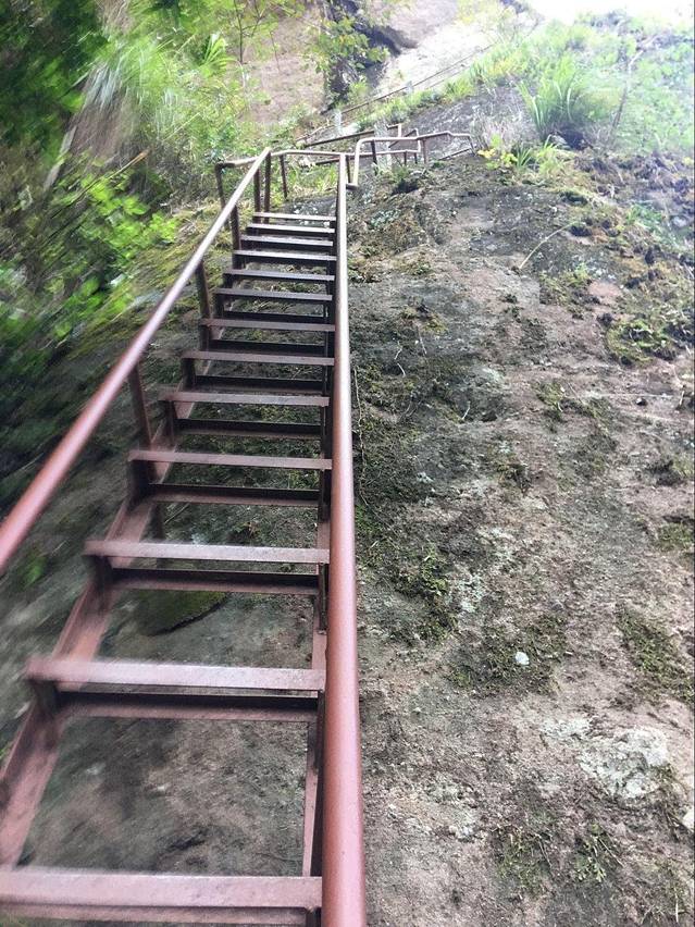 基本上所有的旅行团都这里就直接返程了,因为从这里再继续往下走去水帘洞需要一个小时。由于我对于岩居很感兴趣,所以就我自己一个人继续走,他们在亭子等我。这便是去往水帘洞的路,这个,整体来说这个是其中最陡的,后面的路都还好。