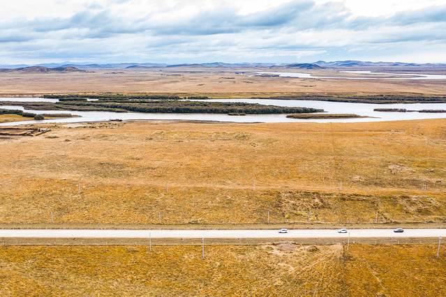 在这场去秋天的行程中,从山野到草原。当无人机飞得足够高时,映入我们眼帘的是一望无际的黄草,此刻的 黄河 似乎已与这片黄草融为一体。尽管在我看来此情此景有些凄凉,但总好比过夏日里全是游客的草原啊。